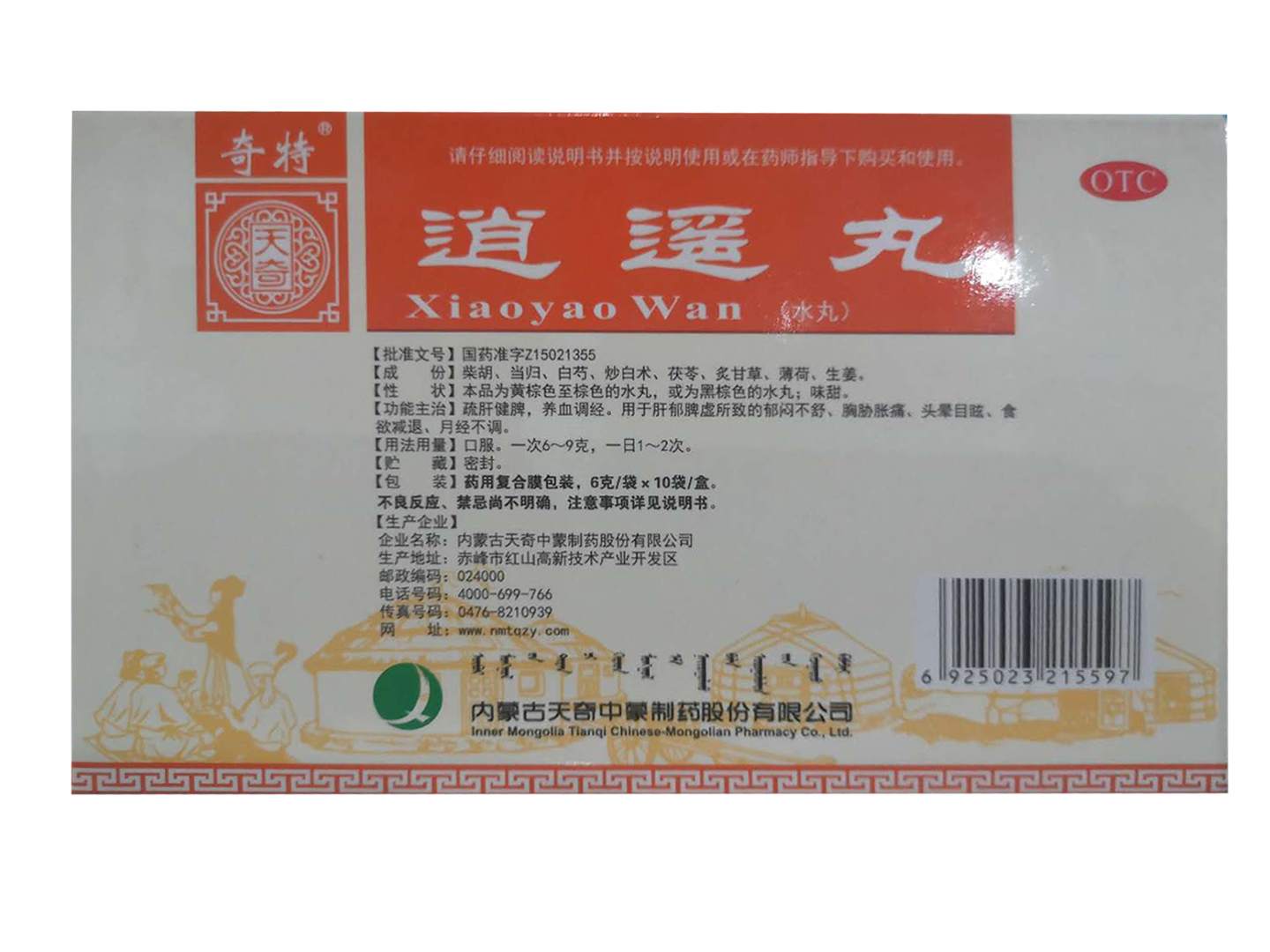 逍遥丸 内蒙古天奇6克10袋